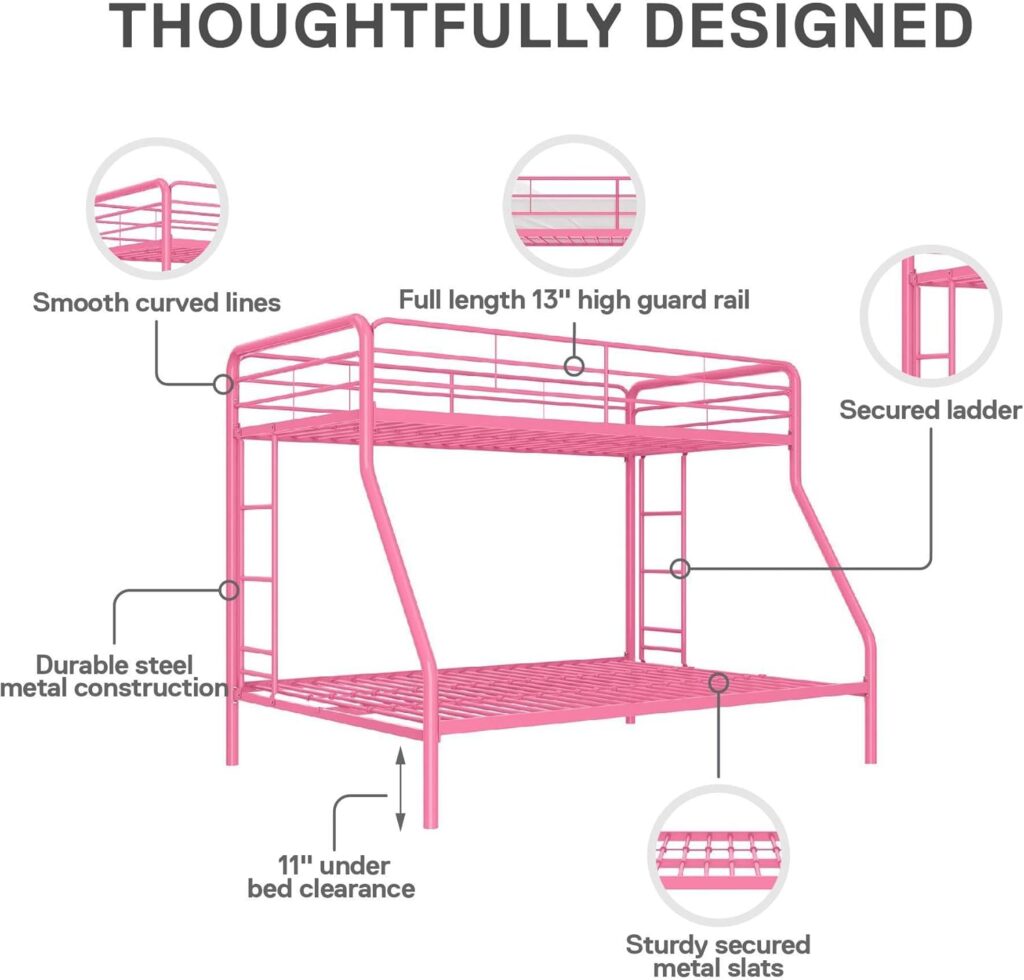 Related Tags : Dusty Metal Bunk Bed Frame with ladder, metal twin over full bunk bed, lightweight metal bunk bed for small rooms, modern metal bunk bed for teens, space saving bunk bed for apartments, DHP Dusty bunk bed, pink metal bunk bed frame, kids metal bunk bed, durable steel bunk bed, compact bedroom bunk bed, teen room furniture, apartment-friendly bunk bed, mattress-support metal slats, bunk bed with guardrails, no box spring bunk bed, stylish metal bunk bed design, twin over full space saver, modern bunk bed for kids and teens, steel frame bunk bed, room maximizing bed setup