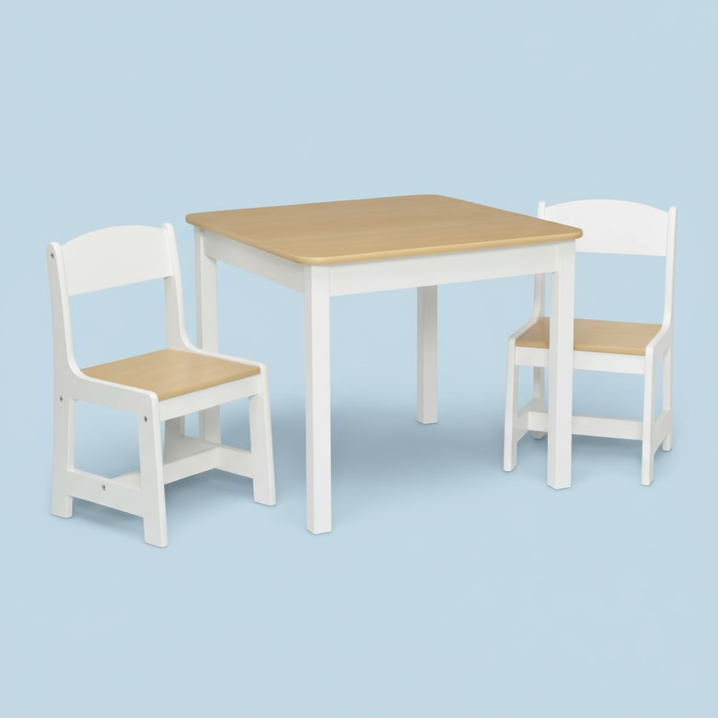 The Delta Children MySize Kids Wood Table and Chair Set offers a sturdy and stylish solution for toddlers and young children to enjoy activities like arts and crafts, snack time, and homework. Made from quality wood in Bianca White/Natural finish, this set includes two chairs and is designed with safety, comfort, and durability in mind, meeting all national safety standards.